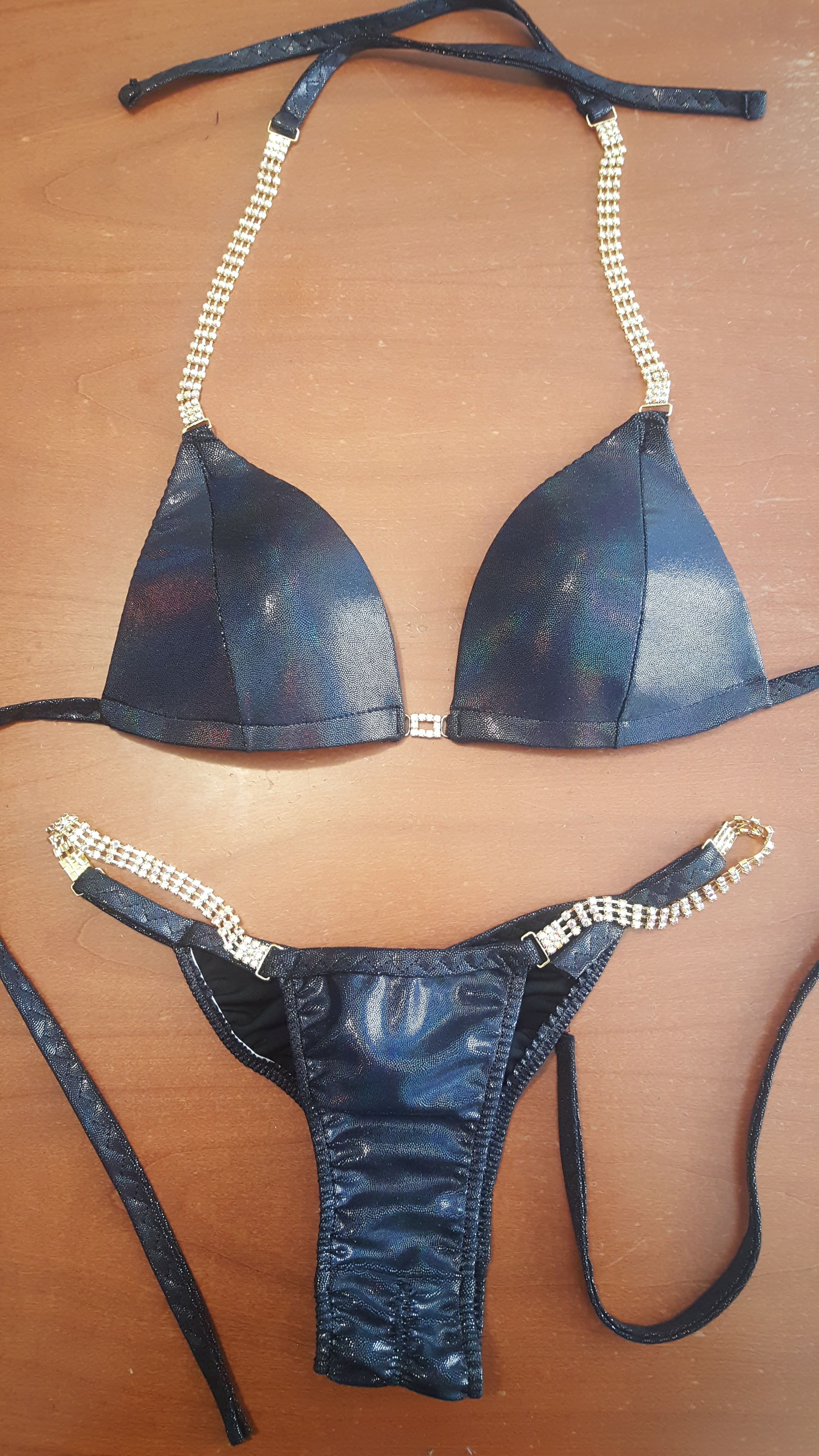 €130.00Bikini basic lycra bluette. Coppe a triangolo push up. 5 connettori