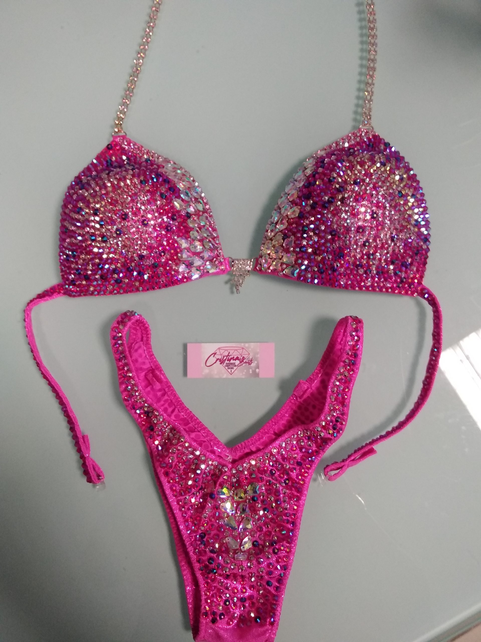 bikini coppe a push up triangolo decorato full swarovski.dimensioni e colori diverse aurora boreale e fuxia. Slip taglio russo. Disponibile in tg disponibile in tg differenziate