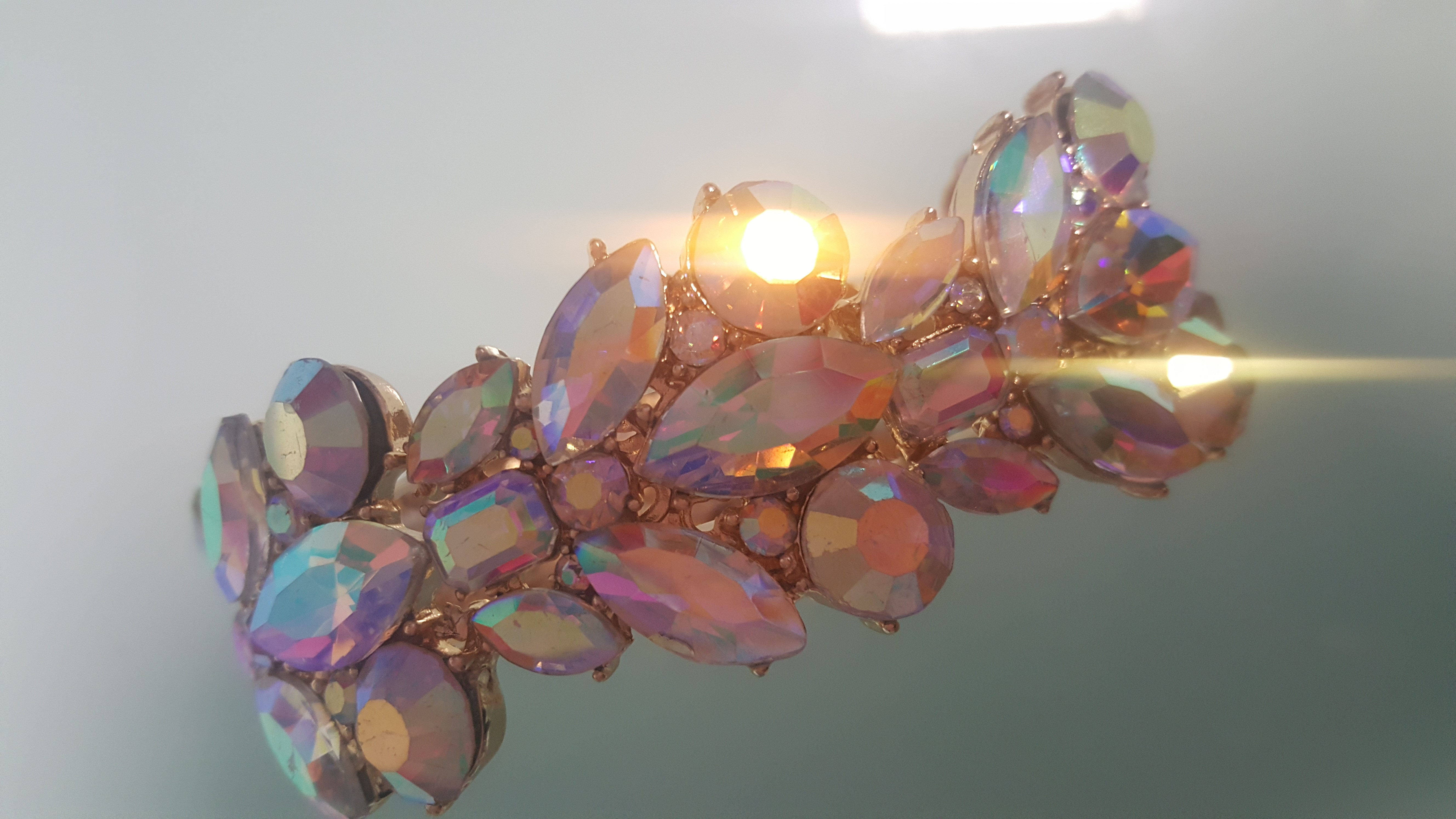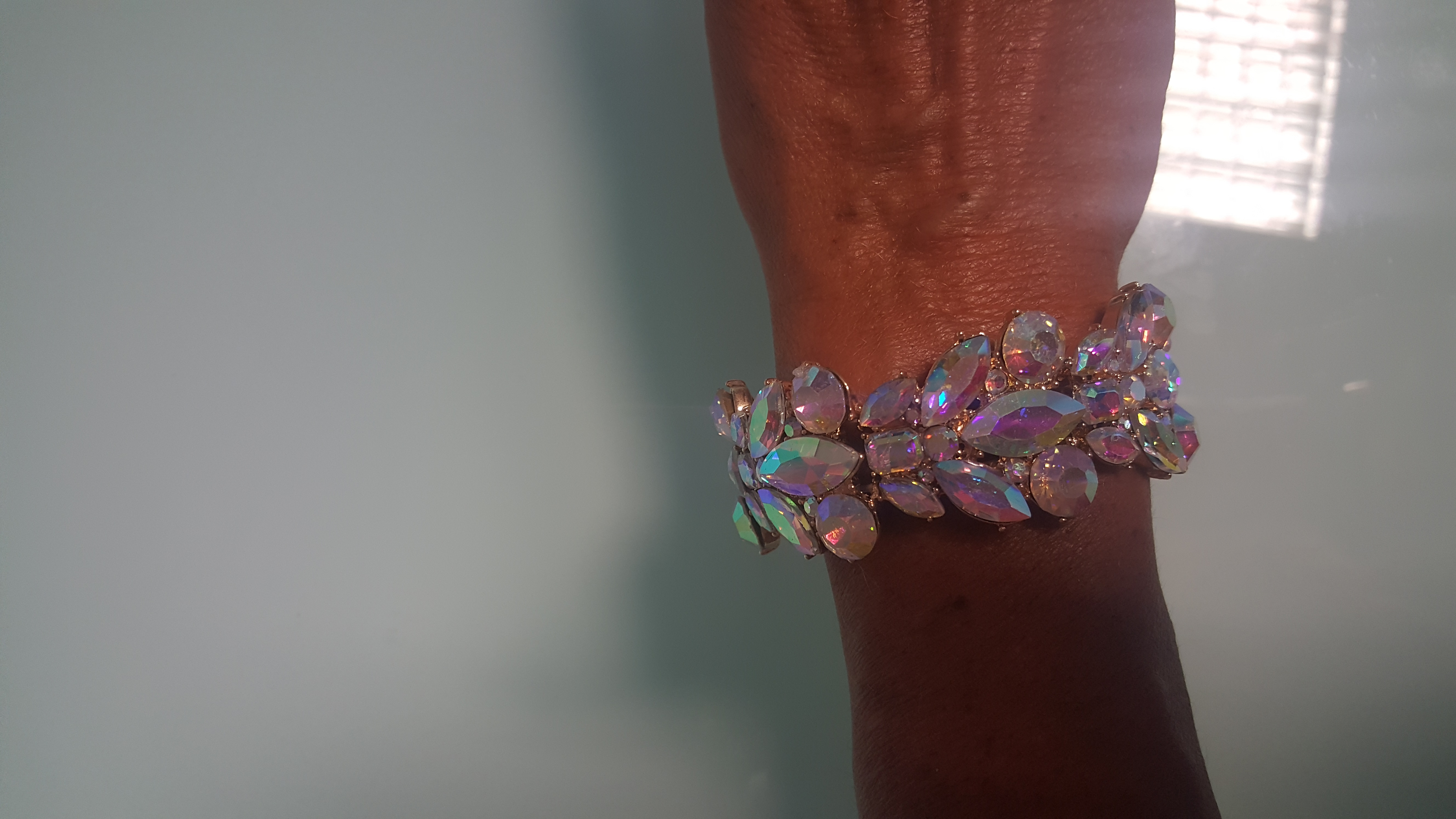 bracciale elasticizzato pietre swarovski a forma di foglia cristal ab. Tg unica